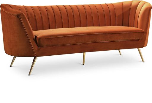 MeridianOriginal price $1,695.53Current price $1,304.25| /Lean back and lounge in luxurious style on this stunning Margo cognac velvet sofa by Meridian Furniture. This contemporary sofa features plush velv...