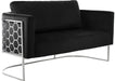 MeridianOriginal price $1,827.80Current price $1,406.00| /Casa Black Velvet Loveseat - Soft Black Velvet - Chrome Iron Metal Design - Contemporary Design -