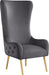 MeridianOriginal price $781.63Current price $601.25| /Alexander Grey Velvet Accent Chair - Soft Grey Velvet - Gold Metal Legs - Deep Button Tufting - High Back Chair