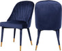 MeridianOriginal price $312.65Current price $240.50| /Belle Navy Velvet Dining Chair - Soft Navy Velvet - Curved Channel Tufted Back - Upholstered Leg with Gold Tip - Contemporary Design
