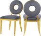 Yield to the decorator within when you bring home this Carousel velvet dining chair. This chair features a metal frame and legs finished in gold stainless steel for a modern touch, but the real star of the show is the donut-shaped seat back that exudes undeniable contemporary charm. The seat and back are both plumply filled for comfort and upholstered in soft grey velvet for a chic look.