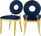 Yield to the decorator within when you bring home this Carousel velvet dining chair. This chair features a metal frame and legs finished in gold stainless steel for a modern touch, but the real star of the show is the donut-shaped seat back that exudes undeniable contemporary charm. The seat and back are both plumply filled for comfort and upholstered in soft navy velvet for a chic look.