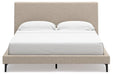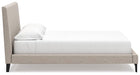 Clean-lined and contemporary—but far from stark—this California king upholstered bed with roll slats is a fresh style awakening. Its sleekly simple low profile and soft gray woven fabric play perfectly with the modern aesthetic and calming mood you long for in your tranquil retreat.