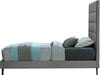Crawl into this cozy Elly grey velvet twin size bed for a restful night's sleep. The deep button tufting on its tall headboard provides a soft, pillowy surface to lean against for nighttime reading or watching TV. Supported by angled wood legs with an espresso finish, the side rails and footboard are also comfortably padded and upholstered. Contemporary styling ensures that this bed will integrate nicely into any existing d?�cor.