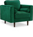Stretch out and relax on this handsome Emily chair. This Meridian Furniture chair features wooden legs and a sturdy frame, so it's built for the long haul. Its vibrant green velvet upholstery is a jewel tone that's simply stunning and that adds a pop of color to your day. The chair's back cushions are plump and filled with premium material to cradle you in comfort, and it comes with two roll-style pillows for helping you prop up and unwind.