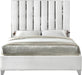 Create a bold yet welcoming sanctuary in your bedroom with this Enzo White Velvet King Bed. The chrome channel design features velvet fabric upholstery for a sleek, glamorous look. The chrome legs provide support for the plank-style base, ensuring durability and long-lived beauty. Full slats are included, making setup easy and quick. No box spring is required with this bed, so you can use it with your choice of mattress.