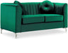 The Isabelle Collection by Meridian Furniture. Features beautifully designed velvet upholstery with custom chrome legs. This collection is guaranteed to be the highlight of any home. Throw pillows included.