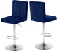 Relax in total comfort while sipping cocktails from this Joel Navy Velvet Adjustable Stool. Rich velvet upholstery gives this stool a luxe look that oozes glamour and sophistication with every turn. The chrome-finished base has a definitive modern edge, and a foot rail on the bottom gives you a spot to rest your feet while you unwind. Easily raise or lower the seat with just the touch of a lever to ensure custom comfort at the home bar or your kitchen counter.