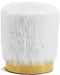 Bring Hollywood glamour home with this Joy White Fur Ottoman/Stool. Its fun faux fur upholstery is chic and sleek and designed to make you feel like you're living in the lap of luxury. The gold stainless steel base has a bold metallic finish for added drama, lending this stool a dramatic look. Prop up your feet on this flirty stool, or put it to work as a fun seat in your bedroom or boudoir space.