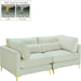 Ready to get cozy? Curl up from the welcoming confines of this Julia velvet modular sofa and you can do just that! Its soft cream velvet upholstery is soft and supple to the skin, coaxing you to relax, unwind, and sit for a spell. It comes with both gold and chrome legs for a customizable and contemporary finish. Pair this Julia piece with others to form an infinite number of seating configurations to meet your particular decorative desires and space requirements.