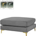 Ready to get cozy? Prop your feet up on the welcoming surface of this Julia velvet modular ottoman and you can do just that! Its soft grey velvet upholstery is soft and supple to the skin, coaxing you to relax, unwind, and sit for a spell. It comes with both gold and chrome legs for a customizable and contemporary finish. Pair this Julia piece with others to form an infinite number of seating configurations to meet your particular decorative desires and space requirements.