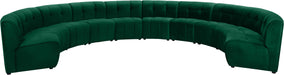 Invest in your home's comfort with this Limitless 10 Piece Sectional. This modular unit offers tons of flexibility in the number of ways that you can put each piece in the Limitless collection together to get the ideal customized look. Upholstered in green velvet, this beautiful piece is soft and cool to the touch, so you can feel comfortable from every angle. Button and channel tufting add to this unit���s upscale look and contemporary charm.