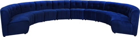 Invest in your home's comfort with this Limitless 10 Piece Sectional. This modular unit offers tons of flexibility in the number of ways that you can put each piece in the Limitless collection together to get the ideal customized look. Upholstered in navy velvet, this beautiful piece is soft and cool to the touch, so you can feel comfortable from every angle. Button and channel tufting add to this unit���s upscale look and contemporary charm.