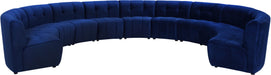 Invest in your home's comfort with this Limitless 11 Piece Sectional. This modular unit offers tons of flexibility in the number of ways that you can put each piece in the Limitless collection together to get the ideal customized look. Upholstered in navy velvet, this beautiful piece is soft and cool to the touch, so you can feel comfortable from every angle. Button and channel tufting add to this unit���s upscale look and contemporary charm.