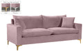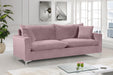 Curl up with a good book from the welcoming confines of this Naomi Pink Velvet Sofa. The color of this sofa adds a bold touch to your decor and shakes up otherwise neutral color schemes. Plush velvet material feels cozy and comfortable against your skin, while deep seat cushions provide lots of room for you to stretch your legs. This sofa comes with both gold and chrome legs, so you can customize its look to meet your decor plans. Pillows are included for added homey warmth and comfort.