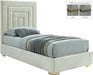 Give your bedroom a new look in an instant with this Nora twin-size velvet bed. This sumptuously glamorous bed is just the thing for a bedroom makeover, with its rich cream velvet and neutral color palette that makes it an easy fit in your modern d?�cor. Deep channel tufting makes this bed a standout and fast focal point in your room. Both gold and chrome legs come with the Nora bed, so you can customize its look.