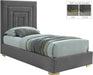 Give your bedroom a new look in an instant with this Nora twin-size velvet bed. This sumptuously glamorous bed is just the thing for a bedroom makeover, with its rich grey velvet and neutral color palette that makes it an easy fit in your modern d?�cor. Deep channel tufting makes this bed a standout and fast focal point in your room. Both gold and chrome legs come with the Nora bed, so you can customize its look.