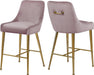 The home bar or kitchen counter gets a contemporary makeover with the addition of this Owen Pink Velvet Stool. Clean lines and a simple design make this stool nothing short of elegant. The pink velvet upholstery is sleek and svelte to the touch, revving up the comfort factor of this stunning stool. The polished gold legs have a ball design that's both modern and sophisticated, while a matching handle on the back adds to the overall modish feel of this delightful stool.