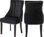 Dine in luxurious style with the Oxford velvet dining chair. Featuring a curved high back, plush cushioned seat and deep tufted velvet upholstery studded with chrome nailheads, this dining chair is sure to take your dining experience to a whole new level. Espresso wood legs provide sturdy support and complement the stunning upholstery for a sleek, contemporary design.