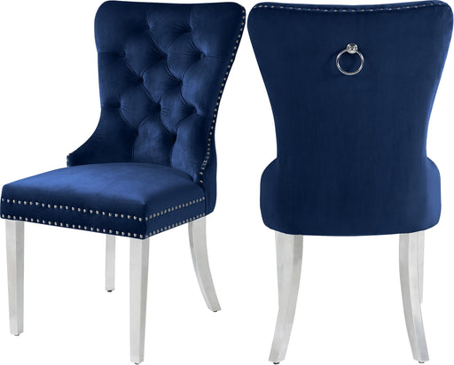 MeridianOriginal price $396.83Current price $305.25| /Carmen Navy Velvet Dining Chairs (2) - Luxurious Navy Velvet - Gold Metal Legs - Deep Button Tufting - Gold Knocker on Back