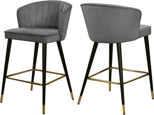 MeridianOriginal price $300.63Current price $231.25| /Give your kitchen counter or home bar a fresh new look with this Cassie Grey Velvet Stool. The shell-shaped back and channel tufted design draw the...