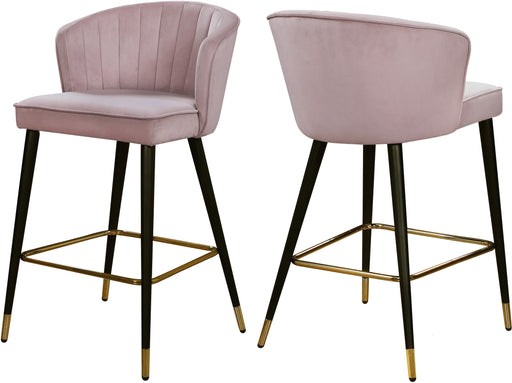 MeridianOriginal price $300.63Current price $231.25| /Give your kitchen counter or home bar a fresh new look with this Cassie Pink Velvet Stool. The shell-shaped back and channel tufted design draw the...