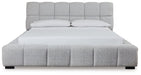 The epitome of fashion-forward design, this king upholstered panel bed is a beautiful blend of comfort and luxury. Shiny chrome-tone accents, a pea...