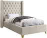 Elegant and eye-catching, the stunning Barolo Bed from Meridian Furniture is the perfect addition to any bedroom. Rich velvet covers the deep tufted design. A beautiful wing bed design is complimented by hand applied gold nail head details. Strength and beauty is guaranteed with a solid wood frame and stainless steel legs.