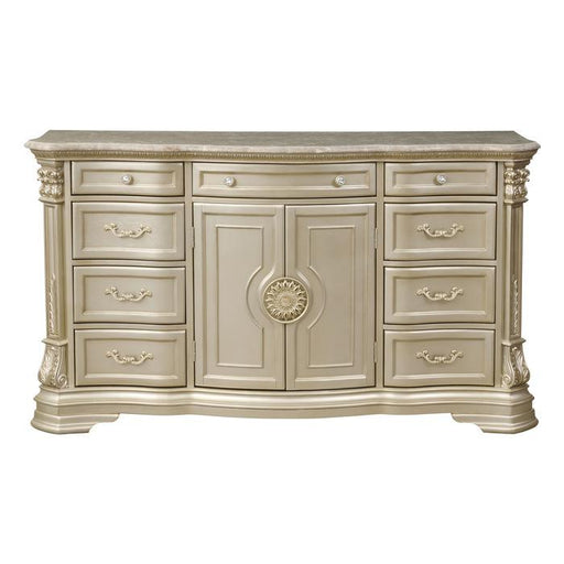Antoinetta Collection by Homelegance Furniture Champagne wood finish Country of Origin: Vietnam Made of Birch veneer, marble and wood Warm cherr...