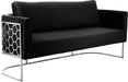MeridianOriginal price $1,827.80Current price $1,406.00| /Casa Black Velvet Loveseat - Soft Black Velvet - Chrome Iron Metal Design - Contemporary Design -