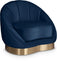 Unwind and rest whenyou'rere seated on this Shelly velvet chair featuring navy velvet upholstery. This lovely piece is just the thing to inject drama into your space whether used on its own or in combination with other items in the Shelly collection. The unique shell shape immediately commands attention, and the brushed gold stainless steel base cements the base in contemporary panache.