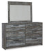 Casually cool style and lots of storage go hand in hand with this dresser with mirror. Its driftwood and smoky finish create an easy-going vibe that's perfect for setting the scene of a relaxed getaway. Six roomy drawers give you the space needed for stowing away clothes and more. Clean lines and modern handles provide a fuss-free look.