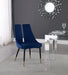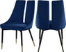It doesn���t get more modish than this! This Sleek velvet dining chair is the bees knees when it comes to contemporary design with its sculptural back and its clean lines. The chair is covered in soft navy velvet upholstery material for a look that���s modern and sophisticated. Matte black iron legs with gold tips gives the chair a hint of elegance.