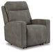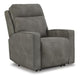 This power recliner is shown in a sleek polished grey with contrasting black tone trim and features deeply padded back and seat cushions. Features ...