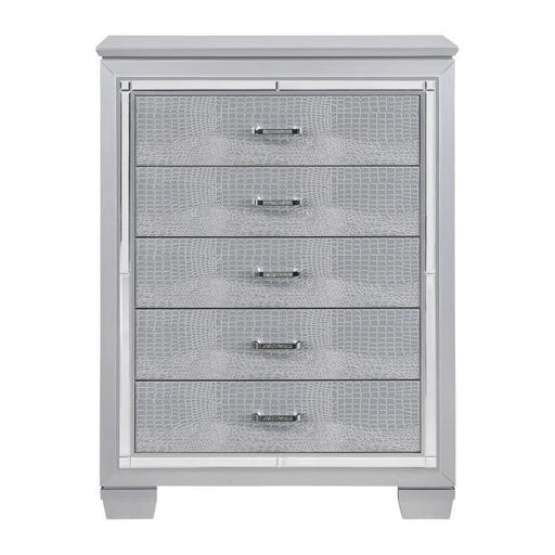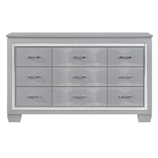 Homelegance (Homerica East)Original price $1,195.45Current price $919.58| /Allura Collection by Homelegance Furniture Silver finish Country of Origin: Malaysia Made of faux alligator embossed veneer and glass Faux allig...