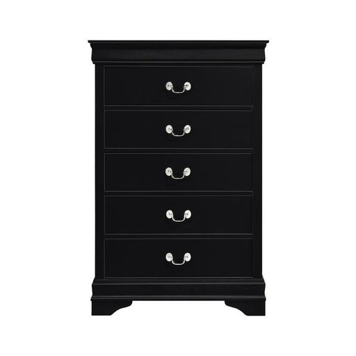 Mayville Collection by Homelegance Furniture Black finish 5 Drawers Antiqued metal bale hardware Distinct framing