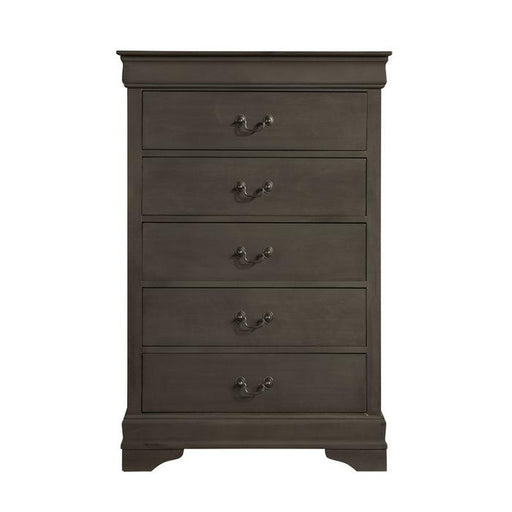 Mayville Collection by Homelegance Furniture Gray finish 5 Drawers Antiqued metal bale hardware Distinct framing