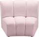 Create a seating group that works for every possible situation with this Infinity modular chair and other pieces in the Infinity collection. Upholstered in soft pink velvet material that feels great against the skin and offers long-wearing beauty, this piece fits with other Infinity items for an infinite number of combinations that get your seating requirements just right but that look just as nice when used on their own.