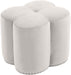 Bring a whimsical touch to your space with this fun Clover velvet ottoman. Beautifully soft cream velvet upholstery covers the exterior of this ottoman, lending it a plush and luxurious look and a velvety feel. The contemporary design is just right for modern d?�cor themes, whether you use it in the living room or bedroom. Piping around the top of this fabric ottoman helps reinforce the design for a look that turns heads.
