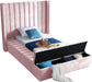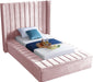 Make a bold statement in your bedroom with this stunning Kiki pink velvet twin bed. Its pink velvet design with channel tufting gives it a chic, textured appearance that?��Ǩ�Ѣs both comfortable and dramatic. This twin size bed features storage rails along its full slats frame, making it the perfect solution for individuals in limited sleeping spaces. Its width of 70.5 inches, depth of 94 inches, and height of 65 inches offers ample room to sleep without being cramped.