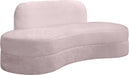 Relax and unwind from the soft comforting confines of this Mitzy velvet sofa. This elegantly eye-catching chair has a lot to offer with its uber contemporary design and its soft pink velvet. Its unique kidney-shaped design lends it to modern d?�cor themes with ease, and the upholstered base provides sturdy support for you as you sit and destress in front of the TV.