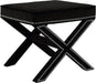 You'll be sitting pretty on this Nixon black velvet ottoman/bench. This beautiful piece has a stunning look with its black velvet upholstery and chrome nail head trim that gives your room a decidedly contemporary vibe. The X-shaped legs are sturdy and stout, making it a beautifully durable addition to your space. The ottoman's large top accommodates your feet while you relax and unwind with a good book, or pull it out on game night for an extra seat.