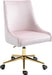 Bring functional beauty to the limelight whenyou'rere seated in the comforting confines of this Karina Velvet Office Chair. This chair isn���t just another pretty face for your office, althoughyou'rell fall for its bubblegum pink velvet upholstery and rich gold base. This contemporary chair is just as utilitarian as it is attractive, with its swiveling design and five-star base with casters to make it easy to maneuver around your workstation. The chair is also adjustable, so it���s easy to get comfortable and find your favorite sitting position.