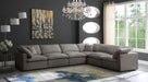 No matter how big or little the size of your gang, they can all find their sweet spot when you choose pieces from the Plush collection to build your ideal seating group. Choose this four-piece set or pair multiple pieces together to get the custom look everyone will love. The soft grey velvet material is soft and welcoming to the touch, and the set���s cushions are overstuffed with a down and feather blend to provide ample support for tired bodies.