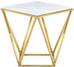 The Mason table, by Meridian Furniture. Featuring a beautiful contemporary design. Constructed of gold finished stainless steel and solid stone top, it's guaranteed to be the highlight of any room.