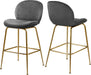 Rev up the wow factor in your space with this Paris Grey Velvet Counter Height Stool. The rounded back and minimalist frame lend it a modish feel, and the velvet upholstery is sleek to the touch, adding a comfortable edge to your home bar. The polished gold metal frame lends it a luxe feel, and the counter height makes it ideal for your kitchen counter if desired. A foot rail along the front adds stability to the stool while also giving you a place to rest your feet.