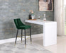 Define your home bar or kitchen counter in style with this Sleek Bar Stool from Meridian Furniture. It features a bar height design for easy integration with your existing setup, and it���s upholstered in soft green velvet material for a luxe look. The contemporary design makes this stool well at home in modern spaces, and the matte black metal legs with gold tips add to its modish appearance in your room.