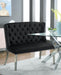 MeridianOriginal price $781.63Current price $601.25| /Suri Black Velvet Settee Bench - Soft Black Velvet - Chrome Stainless Steel Legs - Chrome Nailheads - Contemporary Design