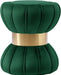 Add modern sophistication to your living space with this chic green velvet Vino ottoman stool. Plush green velvet curves are bound by a gold stainless steel band in its center, creating an hourglass shape that is edgy and complements your contemporary home decor. Place this lush ottoman stool next to your vanity in your bedroom, so you'll have a comfy place to sit while you do your hair and put on your makeup.