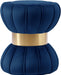 Add modern sophistication to your living space with this chic navy velvet Vino ottoman stool. Plush navy velvet curves are bound by a gold stainless steel band in its center, creating an hourglass shape that is edgy and complements your contemporary home decor. Place this lush ottoman stool next to your vanity in your bedroom, so you?��Ǩ�Ѣll have a comfy place to sit while you do your hair and put on your makeup.